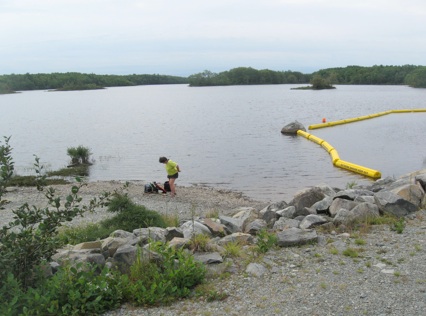 Location: Take exit 31 off the 103 on the road to the golf course (not to the village of Pubnico) Follow that road for 50-100 M and turn right (away from the golf course) going for 5.6 km on a well maintained gravel road. There will be clear access to the lake and a small wharf. Shoreline: Sandy/gravel beach. Very gradual slope Type of access: Vehicle can be unloaded within 10 feet of the waterline. Parking: There is ample parking but it is courteous to park away from the beach. Government facilities: None Public slipway: Yes Public Concrete Ramp: No Topographic Reference: Marine Chart #: UTM grid: Latitude: N43 44.222 Longitude: W 065 43.633 Public Access Description: Drive as close to the water line as you dare, unload your canoe/kayak and park out of the way. Do not block the wharf or the boat house. The area near the boathouse is private property but the owner has allowed access.Caution: This is a large lake and it easy to get disoriented. Preferable to have a GPS to manage a safe return to the launch site. Don’t forget extra batteries.